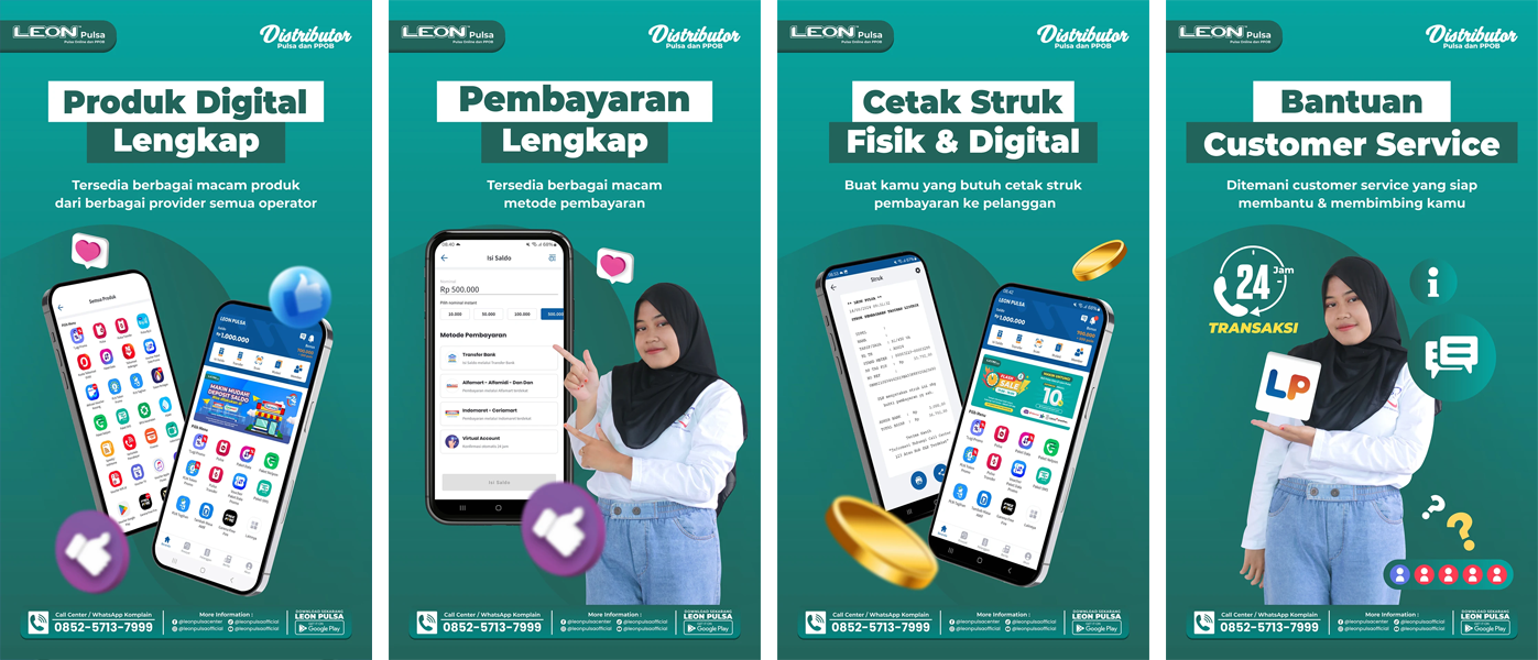 Ini adalah aplikasi mobile gratis untuk member-member LEON PULSA, di mana pun berada. Aplikasi ini memudahkan Anda dalam melakukan berbagai transaksi: